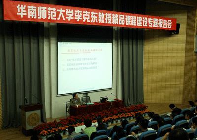 为加强精品课程建设,准确掌握精品课程建设的要求、内容、步骤、重点,积极做好省级和国家级精品课程的准备工作,教务处特邀华南师范大学教育技术研究所所长、广东省高等教育电化教育中心主任、国家级精品课程评审专家――李克东教授来我校作有关精品课程建设的专题报告会,报告会于2007年12月20日下午在科技楼2号报告厅召开,教务处领导、各学院主管教学领导、各精品课程负责人和课程组成员等约200人出席了报告会。 &n...