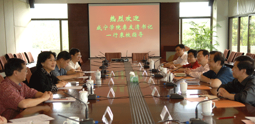 4月21日,湖北咸宁学院党委书记李友清一行7人来我校参观,与我校领导及有关部门负责人在办公楼201会议室进行座谈交流,我校党委副书记陶一桃,人事处、教务处等相关部门负责人出席座谈会。 双方在座谈会上就机构设置情况、人事制度改革的做法与经验;干部制度改革、干部竞聘上岗的做法与经验;分配制度改革的做法与经验;产学研的做法与经验;学科、专业建设的情况及其措施以及后勤管理体制、临时用工制度改革的...