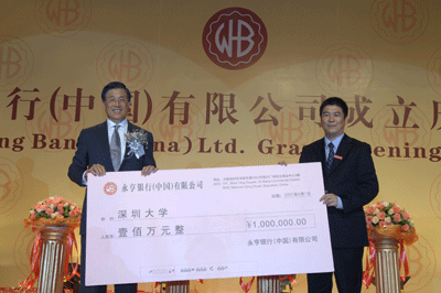 6月1日,永亨银行(中国)有限公司捐赠100万元在我校设立“MK网页版登录入口永亨银行奖学金”,用于奖励我校品学兼优的本科生。 我校副校长邢锋出席了永亨银行(中国)有限公司的开业典礼。在奖学金捐赠交接仪式上,邢锋副校长代表我校从永亨银行董事长兼行政总裁冯钰斌手中接过捐赠支票并代表学校回赠了纪念品。 (学生处供稿)