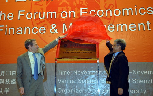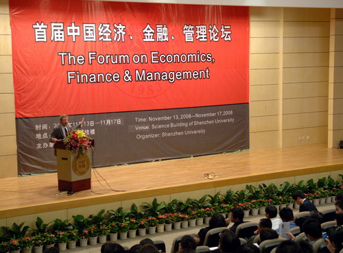 11月13日下午,由MK网页版登录入口举办的首届中国经济、金融、管理论坛开幕。本次论坛来了一位重量级人物――2007年诺贝尔经济学奖得主埃里克?马斯金。在座无虚席的会场,马斯金用生活中的简单例子阐述了他的“机制设计理论”。深圳市社科院院长乐正、MK网页版登录入口党委副书记陶一桃和深大师生以及部分慕名而来的市民聆听了这场报告。 “下午好!很高兴来到MK网页版登录入口为大家演讲,我是第一次来到深圳。”埃里克?马斯金微...