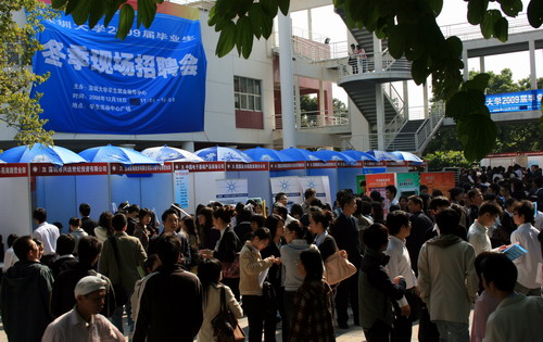 12月18日,我校2009届毕业生冬季校园招聘会在学生活动中心举行。到场66家企业,提供了约1500个工作岗位,其中包括华南国际工业原料城、中国移动、中国电信、光大银行和英孚教育等知名企业前来招聘。 本次招聘会的举行引起了应届毕业生的广泛关注。吸引了近3000名毕业生前来应聘。用人单位对本次招聘会的举办表示十分满意,应聘学生的素质、秩序和形象给他们留下了良好的印象。 (招生就...