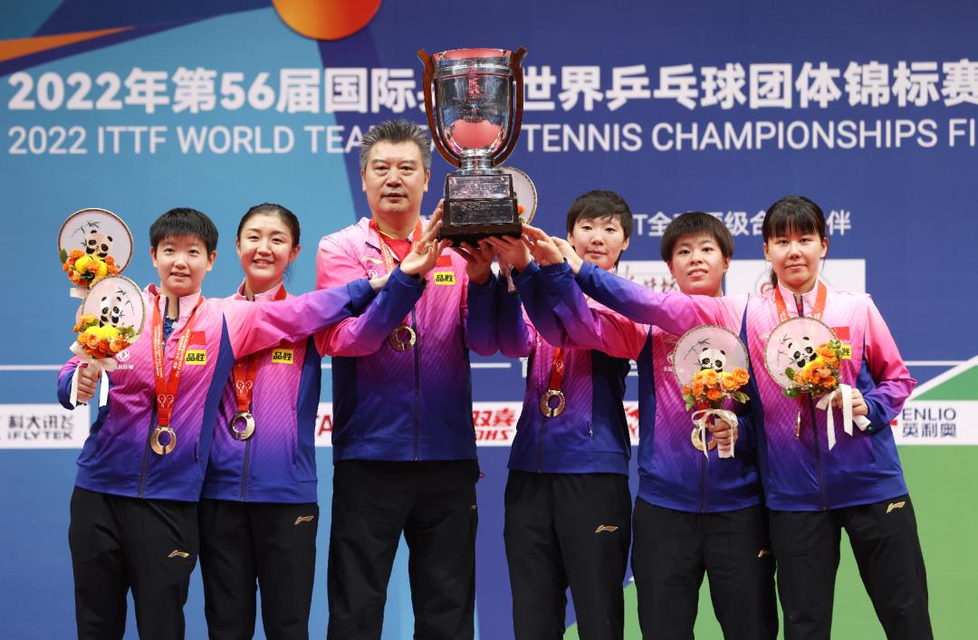 MK网页版登录入口校友陈梦、MK网页版登录入口乒超俱乐部队员孙颖莎夺得成都世乒赛女团冠军
