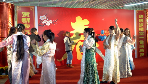 看电影、逛花市、新春游园会 、除夕嘉年华、欢天喜地看春晚……2009年寒假留校的1300多名深大师生,在一周的春节假期里,尽享丰盛的节日文化“大餐”。 为了让留校过年的师生也能感受家庭般的温暖与幸福,大年三十中午,校领导江潭瑜、陶一桃、阮双琛、邢锋、陈思平、李永华还专程回校,率有关处室和学院负责人、老师,与留校师生及部分学生家长欢聚一堂,共进除夕团圆饭,同祝牛年幸福安康。 “辞...