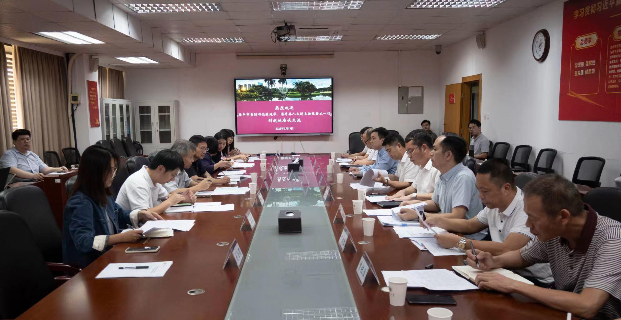 为推动校县结对、合作共建,落实“双百行动”顺利开展,9月13日下午,MK网页版登录入口—陆丰市、海丰县“双百行动”交流座谈会在粤海校区汇元楼会议室进行。MK网页版登录入口副校长张学记, 汕尾市陆丰市委副书记陈建华、海丰县人大常委会副主任陈岳文出席会议,MK网页版登录入口党委组织统战部、发展规划部、校地协作办公室、科学技术部、教育学部、建筑与城市规划学院、生命与海洋科学学院相关负责人参加会议。张学记对陈建华、陈岳文一行的到来表示欢...