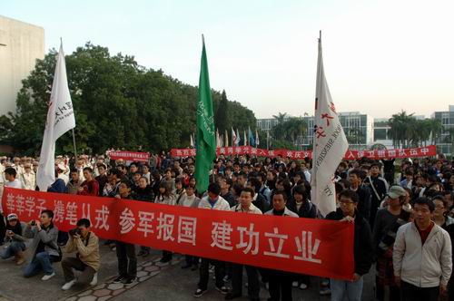 胸佩大红花,身穿迷彩服,四名阳光男儿,壮志满怀。11月19日下午,MK网页版登录入口2009年进藏兵入伍欢送仪式在图书馆门前广场举行。校领导江潭瑜、陶一桃、李永华,南山区委常委、武装部政委杨群吉上校,相关学院负责人及学生代表参加欢送仪式。 学校武装部负责人介绍了我校今年征兵工作的情况。MK网页版登录入口一直重视国防教育,为了更好地完成好征兵工作,学校成立了以党委书记、校长为组长,主管武装工作的党委副书记...