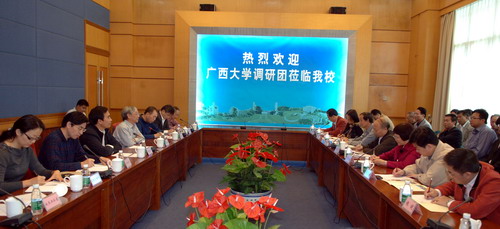 11月27日上午,广西大学原党委书记阳国亮带领广西大学副处以上干部一行40余人到我校参观交流。校长章必功,校党委副书记、纪委书记陶士平以及学校相关部门负责人在国际会议厅D厅与考察团进行座谈。 章必功对广西大学一行的到来表示欢迎,他介绍了MK网页版登录入口的发展历程和基本情况。章必功说,与国内知名高校相比,深大的历史不够厚重,但有自己的发展特色。他向客人介绍了学校在教学科研改革、民主化管理、学...