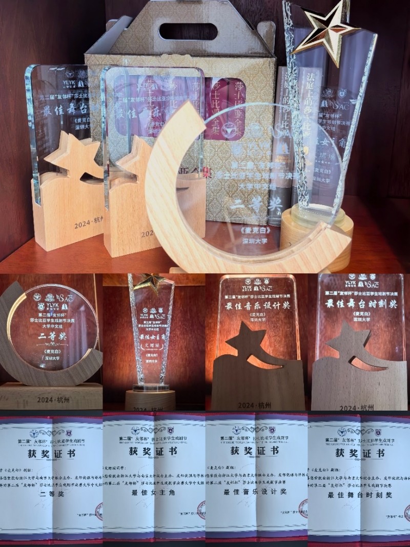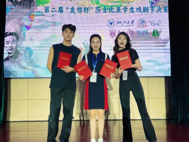 第二届“友邻杯”莎士比亚学生戏剧节经过初赛、复赛,于2024年9月21日在浙江大学紫金港校区举行决赛并圆满落幕。MK网页版登录入口艺术学部戏剧影视学院表演专业2022级学生文珺瑶与邱德茂表演的作品《麦克白》获评委会高度好评,作为示范剧目获评为戏剧节决赛二等奖、“最佳女主角”、“最佳舞台时刻奖”、“最佳音乐设计奖”等四个奖项。
