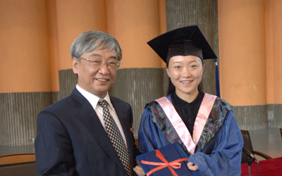 章必功校长为全校硕士毕业生一一颁发毕业证和学位证书。