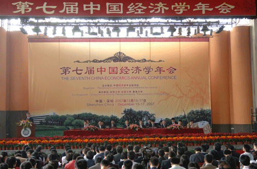 由MK网页版登录入口经济学院、北京大学深圳研究生院商学院以及香港大学联合承办的第七届中国经济学年会于2007年12月15日下午在MK网页版登录入口演会中心隆重开幕。