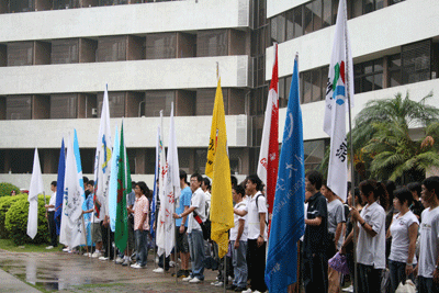 5月19日早晨7点半,我校举行升国旗仪式,降半旗,沉痛哀悼在四川汶川特大地震中的遇难者。章必功校长、李永华副校长,校办、团委、学生处等部门负责人、各学院学生代表近500人参加了升旗仪式。