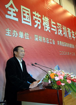 市委常委、市教育工委书记李意珍说,全国劳模们是新时代最可爱的人,是值得我们尊敬的人。在全国总工会的组织下,111名全国劳模来到深圳,这是对深圳全体劳动者的鼓舞和激励。这次与劳模座谈,对于深圳青年理解人生、感悟人生是一个好机会,非常有意义。他说,举办这项活动,正如一堂课、一首歌、一本书激励深圳青年不断前进。劳模们来自全国各条战线、各个行业,他们丰富的人生历程和人生哲理具有不同寻常的教育意义,因此这是一堂非常有意义的人生教育课;劳模们身上展现出来的奋斗激情、奉献精神和创造热情,就是一首亢奋、动听的歌;劳模用奉献、奋斗、创造精神和高尚人格品质凝结而成的荣誉,是一本人生教科书,值得每个深圳青年认真阅读。他鼓励广大深圳青年要向全国劳模学习,以全国劳模为榜样,爱岗敬业、开拓创新,进一步坚定信念,立志成才,争当深入学习科学发展观的排头兵,争当建设中国特色社会主义示范市的先锋。
