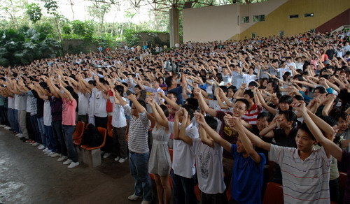 5月4日上午,“延安精神与新时期青年使命”宣讲会在演会中心隆重举行。“延安精神”宣讲团用“讲、唱、跳”生动表演,为我校师生宣讲延安精神。校领导江潭瑜、陶一桃、李永华,各职能部门负责人,各学院师生代表近两千人出席宣讲会。