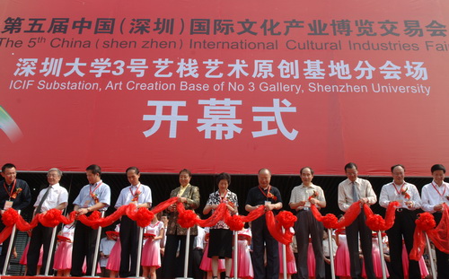 邱玫、姜忠、陈观光、姚欣耀、吴忠、江潭瑜、章必功等为开幕式剪彩。邱玫、姜忠、梁展鹏、江潭瑜为MK网页版登录入口文化产业研究院揭牌。姜忠宣布第五届文博会MK网页版登录入口3号艺栈艺术原创基地分会场开幕。
