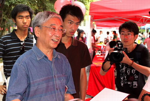 当天下午,章必功校长饶有兴趣地参观了创意市集的每个摊位。在泰强动漫游戏的摊位前,章校长手握游戏手柄,与同学们一同体验了一把泰强公司最新自主研发设计的多平台游戏――BAJA赛车游戏。在《深大青年》杂志摊位前,章校长亲手挥笔题字:“祝深大青年越办越青春!”在手工艺品摊位前,章校长对心灵手巧的工艺品创意者表示赞扬。