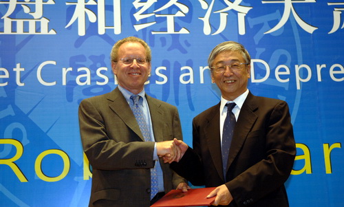 6月5日下午,哈佛大学知名经济学教授罗伯特•巴罗(RobertJ.Barro) 在科技楼一号报告厅为深圳市民作了一场题为“股市崩盘与经济大萧条”的精彩讲座。我校校长章必功、副校长李凤亮、高级研究中心主任邹恒甫教授出席了讲座。讲座由李凤亮主持。