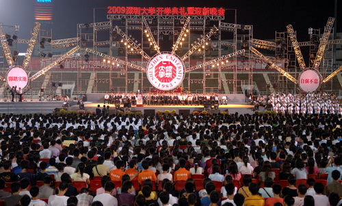 9月9日晚,元平体育场万众欢腾,我校隆重举行2009级新生开学典礼暨文艺晚会。校领导江潭瑜、章必功、邢苗、陶士平、陶一桃、阮双琛、邢锋、陈思平出席典礼。出席仪式的还有专程前来参加MK网页版登录入口医学院首届新生开学典礼暨国际医学院院长论坛的国内外医学教育专家,省卫生厅、教育厅相关部门领导,中国烟草总公司深圳市公司、南太集团相关代表,家长代表等。