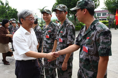 9月17日,我校副校长邢苗、阮双琛、陈思平率机电与控制工程学院、生命科学学院等院领导亲赴广东陆军预备役高射炮兵师第五团深圳葵涌训练基地,看望并慰问那里的1643名新生和17名带队老师。