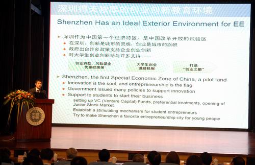 周路明发表题为“深圳创业环境及相关政策”的演讲,梳理深圳创业环境的演变过程,分析创业环境和创业教育之间的因果关系。他提出,创业环境的优劣决定了当地创业教育的高度。深圳自由开放的创业环境能够激发学生的创业冲动,大学的创业教育则应更重视培养学生创业的精神气质,紧密的良性互动必将催生新一代的创业家。如果能够促成深港两地的合作,将造就中国最接近硅谷的最佳创业生态。香港创业教育和深圳创业环境的完美结合令人期待。