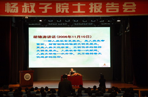 章必功在主持词中指出:杨叔子院士长期以来一直关注、帮助MK网页版登录入口。在本科教学水平评估中,杨叔子院士担任组长,给予我校很大的支持。杨叔子是50年代成长起来的知识分子的杰出代表,可以称之为新时代“科学与传统文化臻于完美的结合”、“诗人与科学家臻于完美的结合”。
