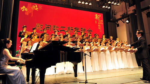 除旧迎新,欢歌载舞。为感谢荔园园丁们一年来的辛勤劳作,由师范学院主办、师范学院艺术系承办的“慰问教工新年晚会”12月29日晚在国际会议厅举行。校领导章必功、陈思平、李凤亮和各学院领导及部分教工代表欢聚一堂,共同欣赏晚会。