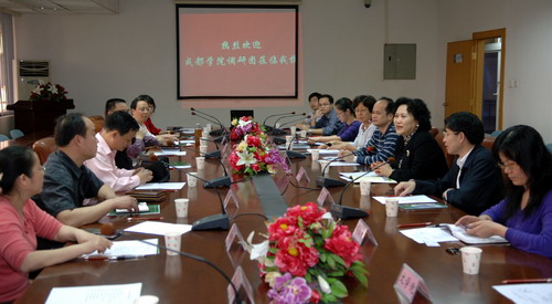 4月2日上午,成都学院调研团一行十余人在党委副书记、纪委书记易贤文的带领下来我校参观交流。调研团首先参观了我校的校园环境,考察了学生宿舍管理和社区辅导员工作情况,随后与我校党委副书记陶一桃及相关处室、学院工作人员在学生处会议室进行了座谈。