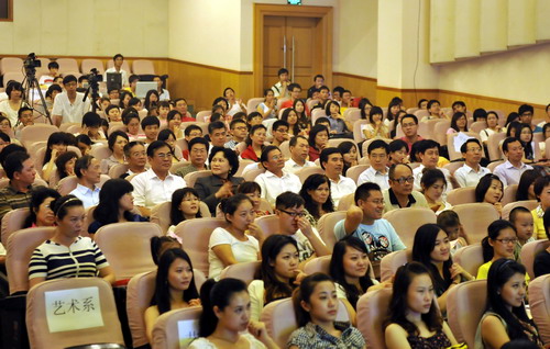 为了迎接建党89周年,我校举办了校园红歌大赛。经历海选、初赛、决赛三个环节,13名获奖者从100多名选手中脱颖而出。6月30日晚颁奖仪式在国际会议厅举行,获奖选手为我校师生献上了一场精彩的文艺演出。我校党委书记江潭瑜,党委副书记陶士平、陶一桃,副校长阮双琛、邢锋、李永华、杜李凤亮出席了颁奖晚会。