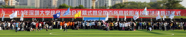 11月12日,我校在南区足球场举行了2010年综合运动会开幕仪式暨全国百所高校阳光长跑活动启动仪式。章必功校长、邢锋副校长、李永华副校长以及学校各相关部处、各学院负责人、各学院学生长跑队员参加了开幕式。