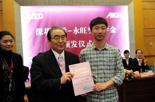 学生代表黄幸瑜发言感谢永旺集团对深大学子的资助。她说,学校和企业的帮助鼓励使自己有能力创造美好的未来,自己一定会不惧困难,使心灵成长,并更多地关心身边的人,使这份爱传递。