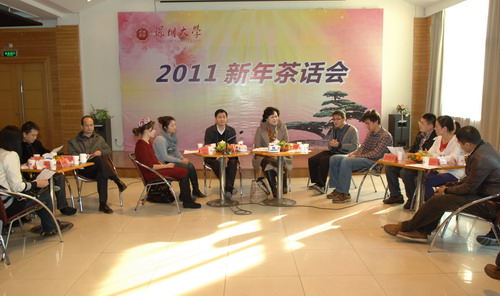 同学们畅所欲言,分享自己对于过去一年的美好记忆以及对未来的畅想。流风诗社社长朱增光认为作为学生要有与社会责任紧密联系的理想。攀上雪宝顶海拔4200米的姜雨竹用她的登山经历与大家共勉。来自澳大利亚的留学生戴安娜回忆这一学期在我校的生活,觉得非常开心,并感谢友好的老师和同学们。茶话会上除了畅所欲言,不乏精彩的即兴文艺表演。播主专业学生廖丽佳带来深情的诗朗诵----顾城的《不是再见》;新疆维吾尔族学生月热亚提•买买提和艾尼娃•艾尔肯翩翩起舞,让现场师生领略了新疆舞蹈的风采,藏族同学德点央金用一首藏语歌曲祝福大家新年快乐。茶话会最后在与会领导和师生的合唱《真心英雄》中结束。