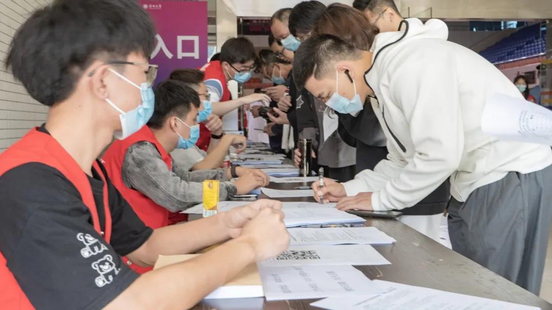 在接种现场,各部门协同配合,确保学生疫苗接种工作安全高效开展,各环节指示引导清晰准确,整个接种流程有序高效,秩序井然。接种现场设置有等候区、登记区、登记备用区、接种区以及留观区、疑似异常反应处置区等区域。登记区安排有20个登记位,接种区安排有16个接种单元,留观区设置有600个座位。前来接种的师生须按流程扫码登记,下载“粤苗”APP进行身份核验;在登记区填写健康状况询问与医学建议表,待医护人员确认符合接种条件后方可进入接种区进行接种;接种后前往留观区进行30分钟的观察无异常后方可离开。
