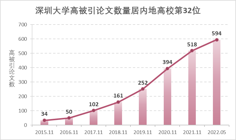 最新数据显示(2012年1月-2022年2月),MK网页版登录入口发表WOS论文28345篇,总被引频次393882次。按总被引频次排名,MK网页版登录入口在国际学术机构排名第544位,较2022年3月上升68位,内地高校第43位,较2022年3月上升2位,广东省内高校第3位。在ESI学科数量上,MK网页版登录入口以14个ESI学科数量位列广东省内高校第2。在ESI高被引论文数量上,达594篇,位列内地高校第32名,广东省内高校第3位,相比2015年11月增长了近16.47倍,实现了数量和质量的双重高速发展。