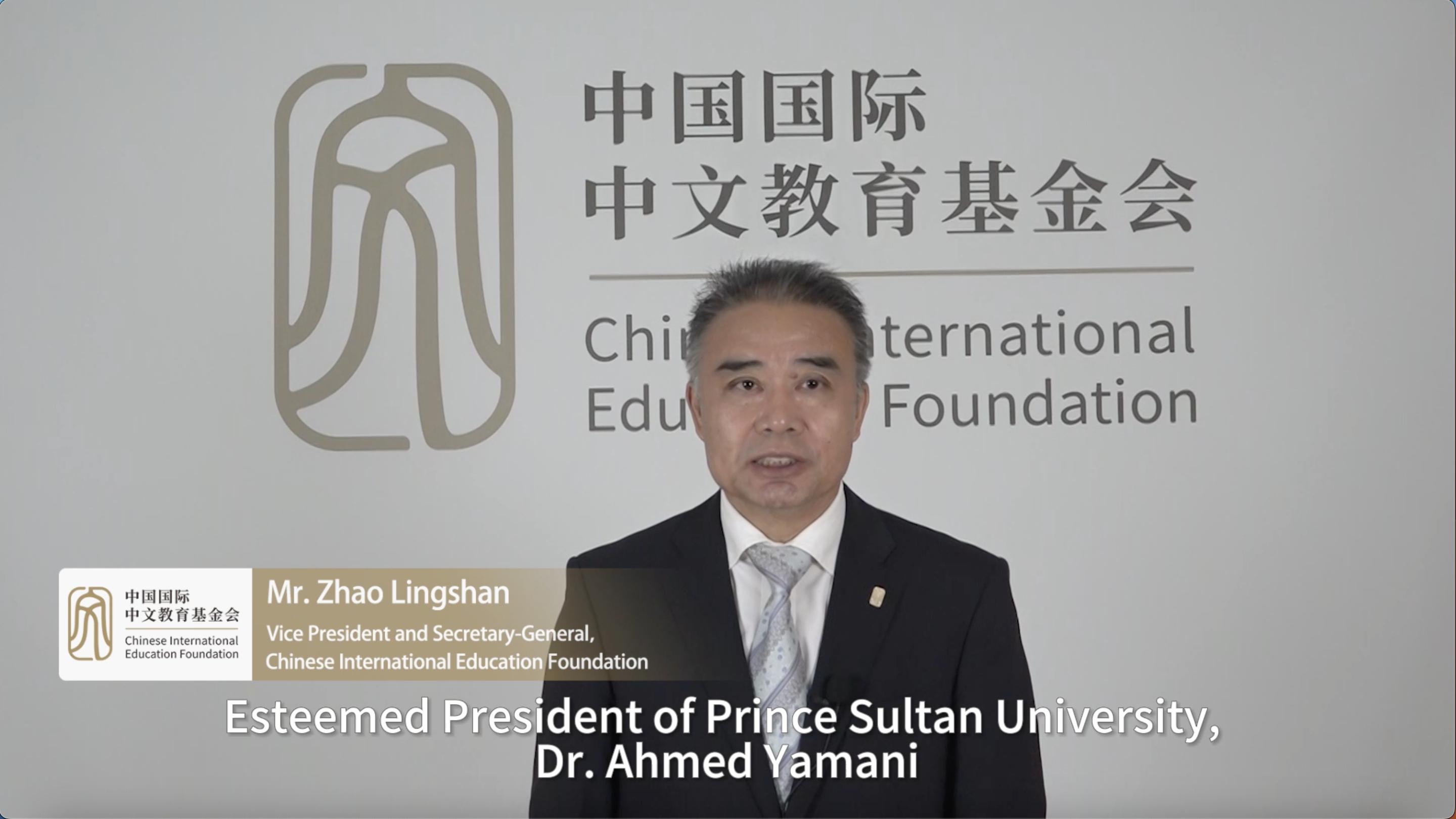 赵灵山通过视频致辞代表中国国际中文教育基金会、理事长杨卫院士对苏尔坦亲王大学孔子学院的揭牌表示热烈祝贺,希望在苏尔坦亲王大学和MK网页版登录入口的精诚合作下,孔子学院能够服务民众,努力办出成效、办出水平、办出特色,成为当地民众学习中文、了解中国的重要平台,构建中沙民众心与心沟通的友好桥梁。