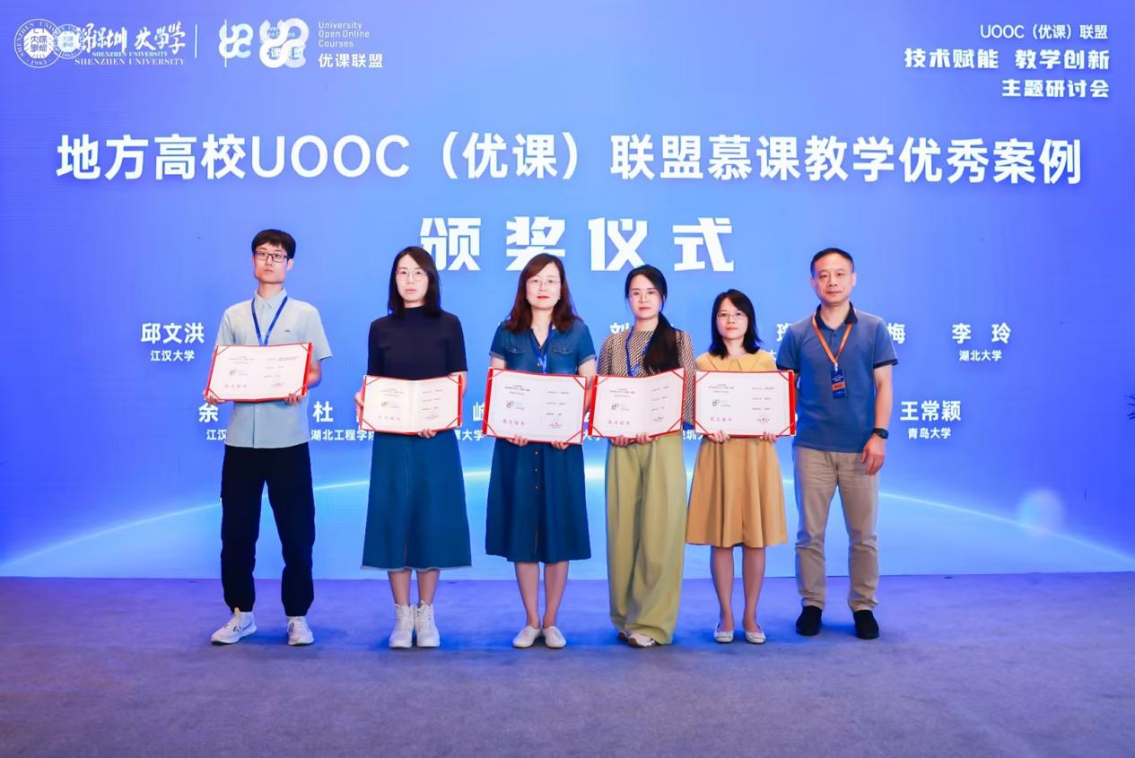 张晓红和杨九民为获得“优课联盟慕课教学优秀案例”奖的30位获奖教师颁奖。慕课教学优秀案例获奖教师代表、MK网页版登录入口副教授罗莎老师讲述了优课联盟对教师教学上的支持。