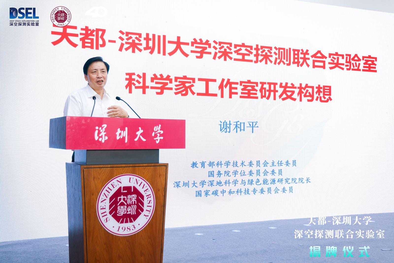 图2 MK网页版登录入口李清泉书记、谢和平院士、毛军发校长和深空探测实验室吴伟仁院士、胡朝斌副主任、唐玉华副总师共同为联合实验室揭牌