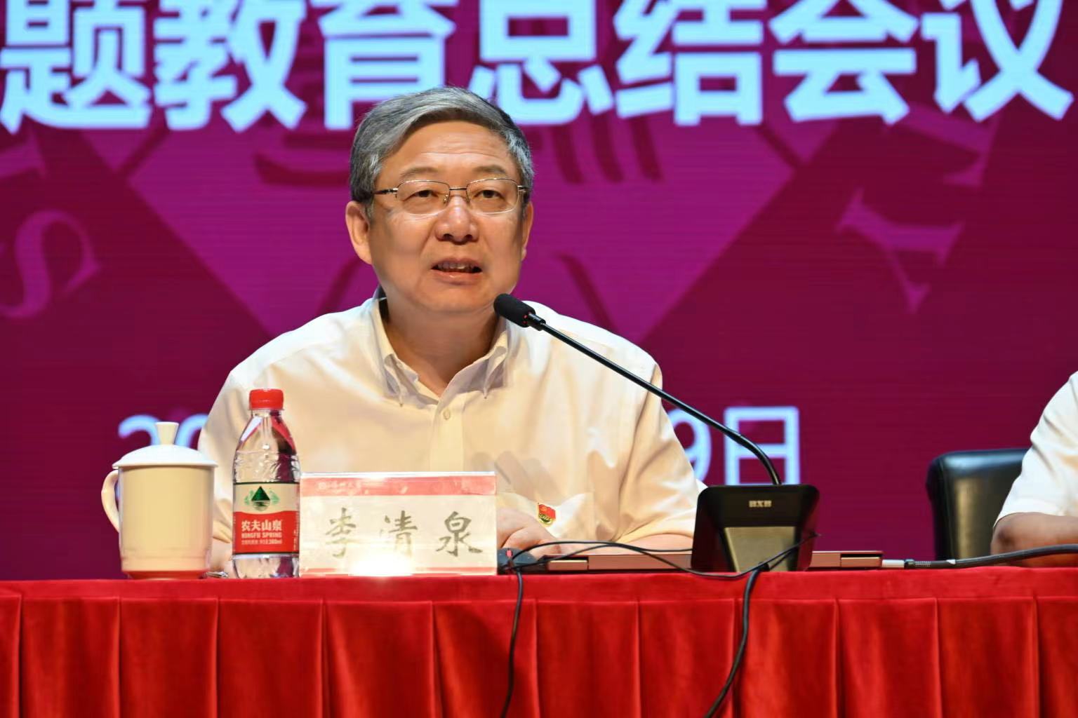 李清泉强调,学校主题教育取得明显成效,下一步学校党委将贯彻落实党中央、省委、市委主题教育总结大会的精神,巩固拓展主题教育成果。他表示,要做好学习贯彻习近平新时代中国特色社会主义思想的深化、内化、转化工作,坚持深化以学铸魂、以学增智、以学正风、以学促干,不断增进对党的创新理论的政治认同、思想认同、理论认同、情感认同;完善长效机制,进一步总结主题教育中的创新做法和典型检验,以制度形式确保成效;持续跟进民生实事,将主题教育与整改结合起来,对问题清单做到一一回应与落实,为建设世界一流综合性大学、打造新时代中国特色社会主义标杆大学努力奋斗。