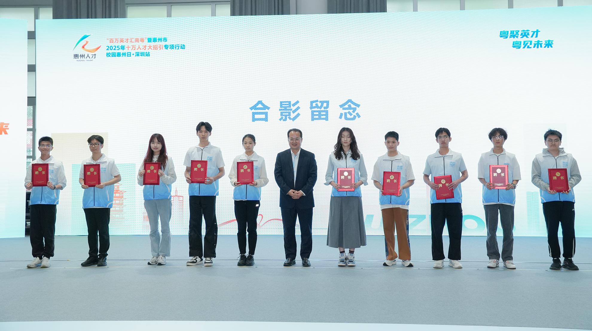活动上,惠州市方向MK网页版登录入口十位在校学子颁授“惠州校园引才大使”证书,并与与会领导共同合影留念。
