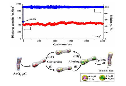 近日,化学与环境工程学院张培新教授课题组在化学领域顶级刊物《Angewandte Chemie International Edition》(JCR一区,影响因子11.994)发表了题为《Robust SnO2-x Nanoparticle-Impregnated Carbon Nanofibers with Outstanding Electrochemical Performance for Advanced Sodium-ion Batteries》(DOI: 10.1002/anie.201802672)的研究论文。该研究通过调控静电纺丝碳纤维中包覆的氧化锡颗粒的缺陷掺杂,极大地提高了材料的倍率性能和循环稳定性。在电流密度为2 A·g-1下,电池循环2500次容量没有衰减,是迄今为止有关钠离子电池报道的最好结果。审稿人对此工作给予非常重要(前5%)和很重要(前20%)的评价,而编辑也强调只有不到10%的稿件能收到如此正面的反馈和评价。(Less than 10% of our manuscripts receive such a positive review. We recommend that you tell the publicity/press department of your institute about your publication and the excellent reviews that it has received; a press release could be possible.)。课题组马定涛和李永亮博士是论文的第一作者,MK网页版登录入口的张培新教授和佐治亚理工学院的林志群教授为论文的共同通讯作者,MK网页版登录入口为第一完成单位和通讯单位。