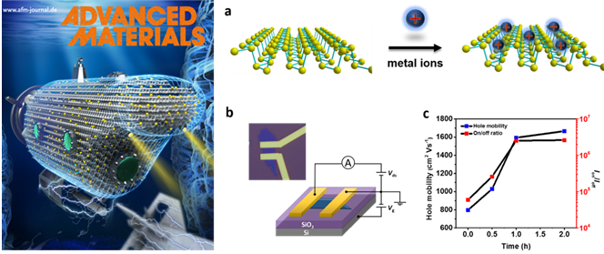 近日,MK网页版登录入口张晗特聘教授课题组在材料学领域的权威刊物《Advanced Materials》(影响因子19.791)中发表一篇题为“Metal-ion-modified black phosphorus with enhanced stability and transistor performance”(金属离子修饰增强黑磷的稳定性和晶体管性能)的论文,在该工作中,通过金属离子修饰的方法制备出高稳定性且高性能的黑磷晶体管。本工作是与中科院深圳先进技术研究院喻学锋研究员团队和武汉大学廖蕾教授团队合作完成。论文第一作者是郭志男博士。
