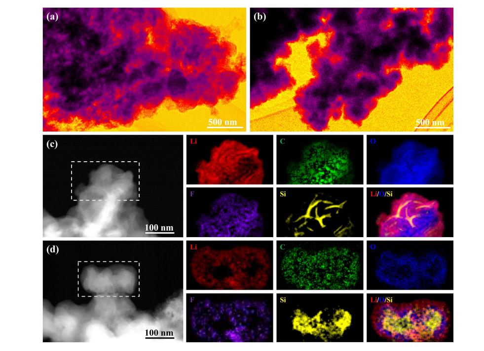 硅(Si)是下一代高能量密度锂离子电池负极材料的理想选择,但其体积的显著膨胀使其稳定性难以达到令人满意的程度。在此,作者证明了在测试期间,当硅纳米颗粒的锂化深度控制在 2000 毫安时/克或更低时,未观察到容量衰减;在合适的锂化深度调节下,硅负极薄膜的断裂得到了很好的缓解,并且循环后的硅仍保持颗粒状,而不会像完全锂化时那样变成絮状。此外,在锂化深度调节下形成的以氟化锂为主的外层固态电解质界面(SEI)比完全锂化时形成的马赛克型 SEI 更能钝化硅负极并防止电解质进一步分解。调节锂化深度被证明是解决紧迫体积问题的可行方案,应像材料层面的优化一样重视容量利用率的优化。