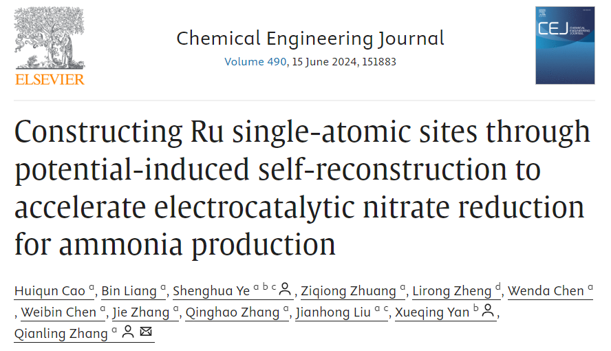3、MK网页版登录入口张黔玲教授团队在期刊Chemical Engineering Journal上发表题为“Constructing Ru single-atomic sites through potential-induced self-reconstruction to accelerate electrocatalytic nitrate reduction for ammonia production”的研究论文,MK网页版登录入口曹慧群副教授和硕士研究生梁彬是共同第一作者,MK网页版登录入口叶盛华研究员、张黔玲教授和北京大学颜学庆教授为共同通讯作者。