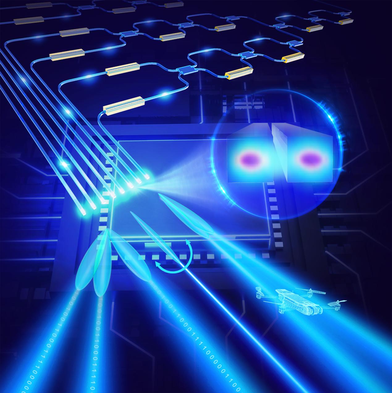 该研究提出一种新型硅基光学相控阵架构,首次在单个硅基光学相控阵中同时实现了大视场、高旁瓣抑制比和复杂波束赋形功能。