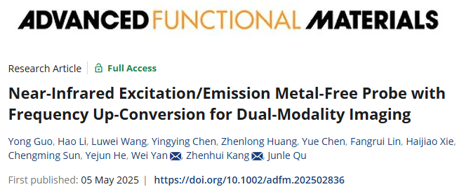 近日,物理与光电工程学院生物医学光子学研究中心在国际知名期刊Advanced Functional Materials(影响因子18.5,中科院JCR一区,TOP期刊)和Analytical Chemistry(影响因子6.8,中科院JCR一区,TOP期刊)上发表高水平论文。