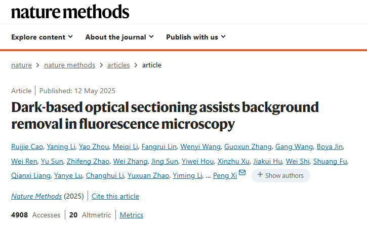 论文信息:Cao, R., Li, Y., Zhou, Y. et al. Dark-based optical sectioning assists background removal in fluorescence microscopy. Nat Methods (2025).https://doi.org/10.1038/s41592-025-02667-6