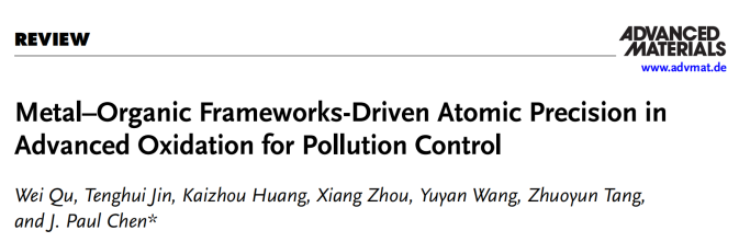 近日,MK网页版登录入口化学与环境工程学院陈嘉平教授团队在国际顶级期刊Advanced Materials(影响因子26.8,中科院JCR 1区,TOP期刊)发表题为“Metal–Organic Frameworks-Driven Atomic Precision in Advanced Oxidation for Pollution Control”的综述论文,团队助理教授屈伟为论文独立第一作者,陈嘉平教授为论文独立通讯作者,MK网页版登录入口为第一通讯单位。