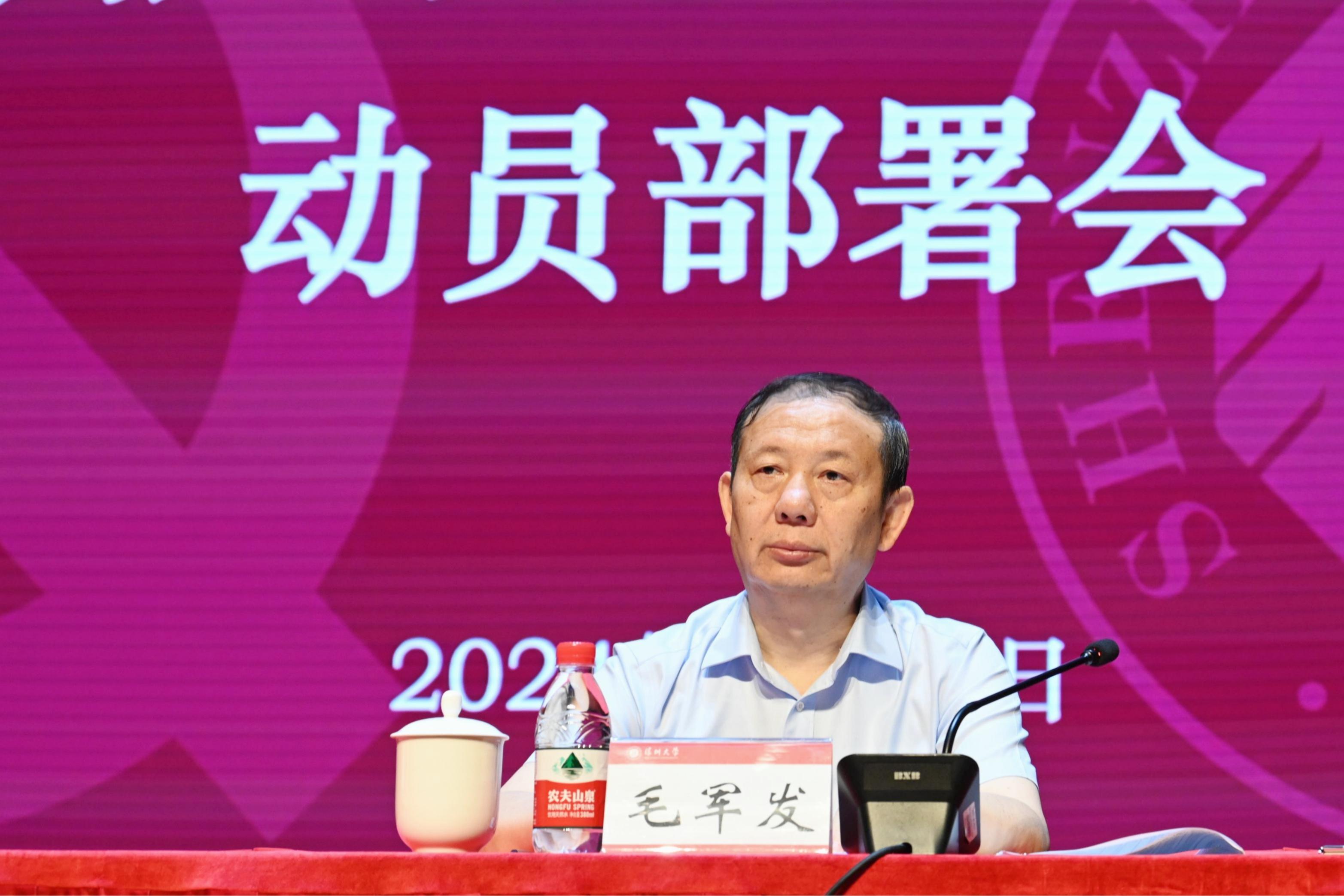 毛军发就贯彻落实学校党纪学习教育动员部署会提出三点要求:一是及时组织传达学习。全校各级党组织要迅速行动起来,认真组织传达贯彻会议精神,以高度的政治责任感和扎实的工作作风,有序推进党纪学习教育等相关工作,力戒形式主义、官僚主义。二是积极推进工作落实。各级党组织要切实履行主体责任,细化工作举措,精心组织实施,切实把方案落实、责任压实、学习抓实、整改做实,确保各项工作取得扎实成效。三是注意加强统筹兼顾。以开展党纪学习教育为契机,进一步统一思想、凝聚共识,进一步提振全校领导干部和党员师生的精神状态,进一步营造干事创业的浓厚氛围和风清气正的政治生态,切实把学习成果和工作成效转化为推动学校高质量发展的蓬勃动力。